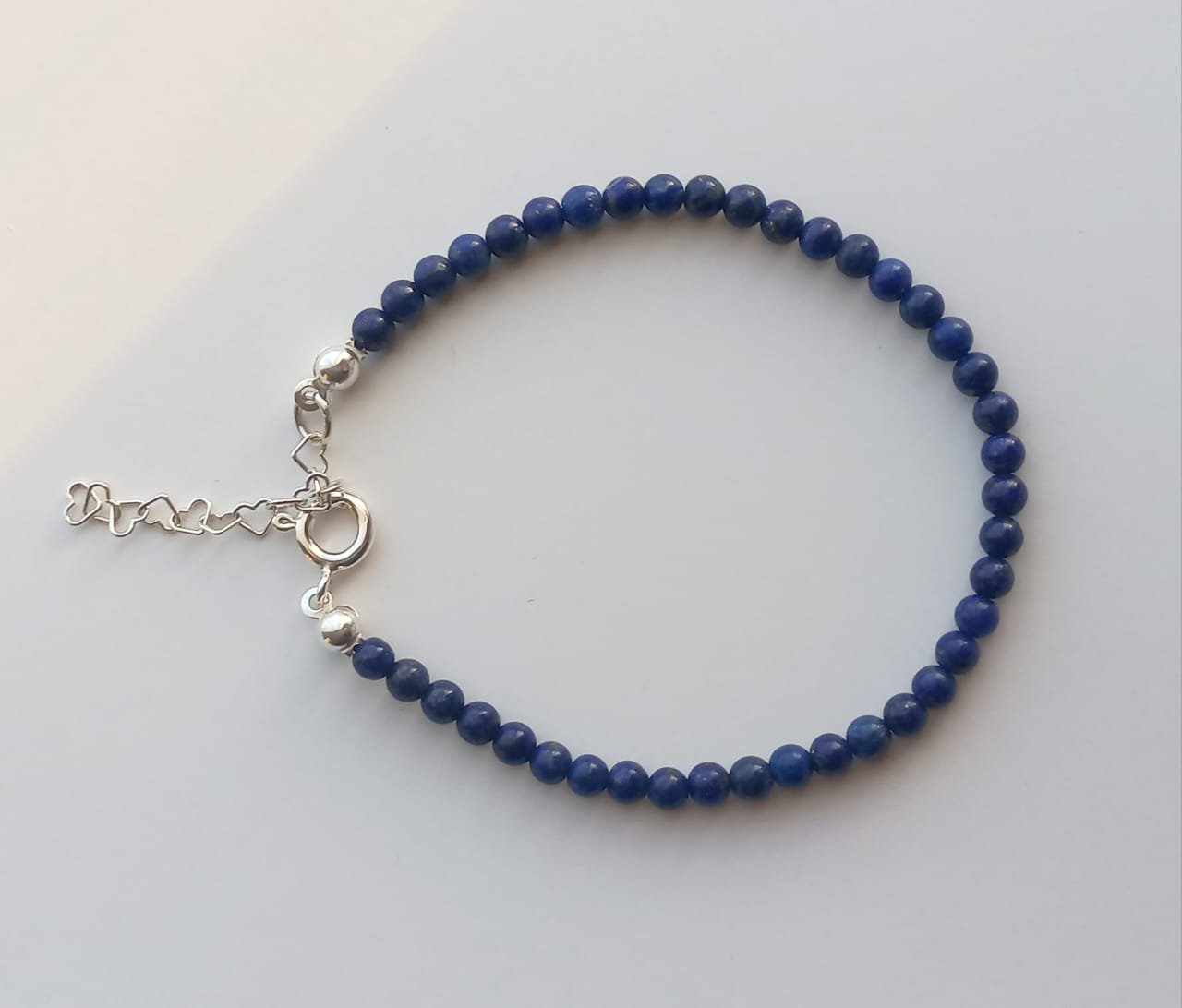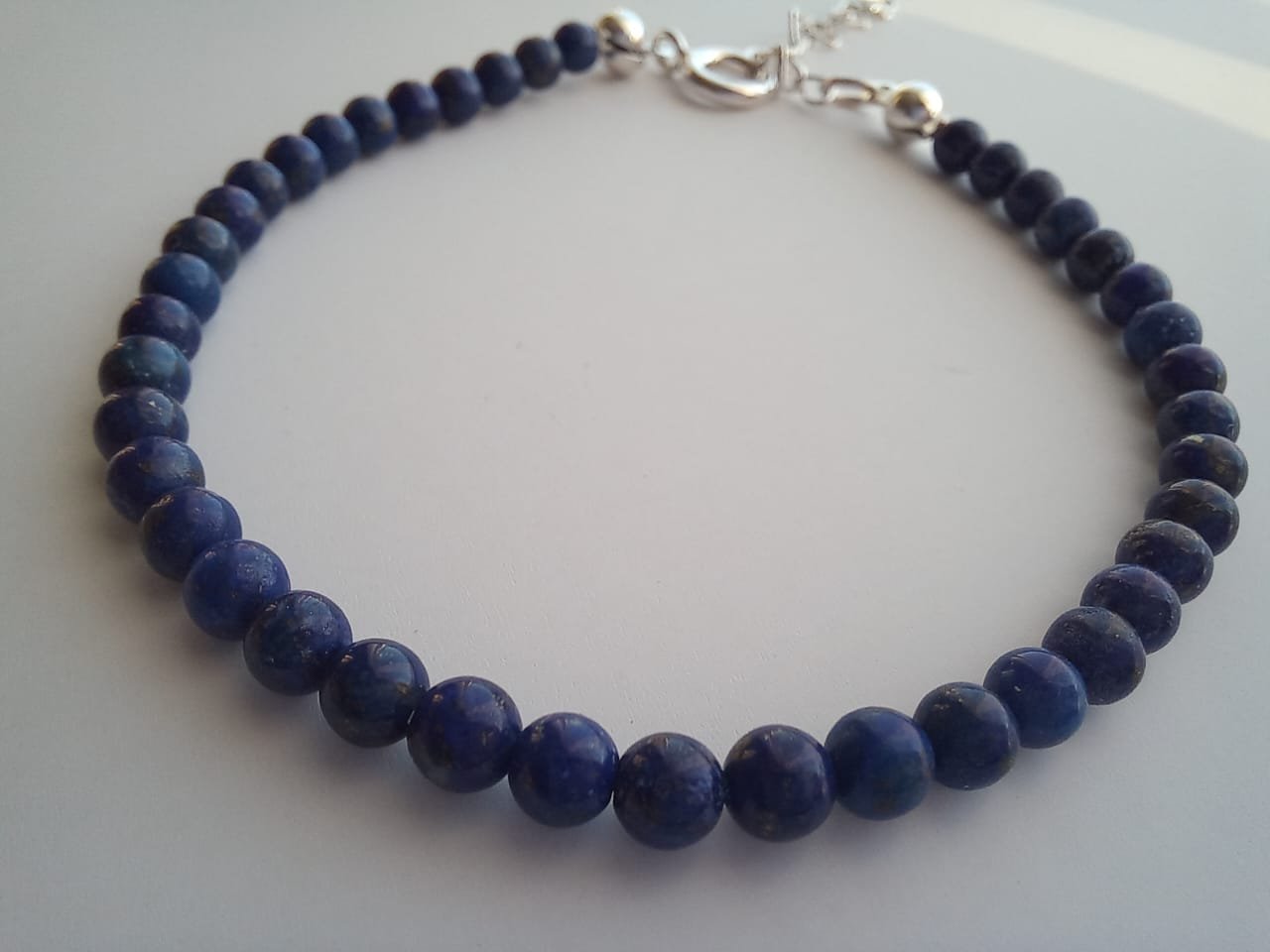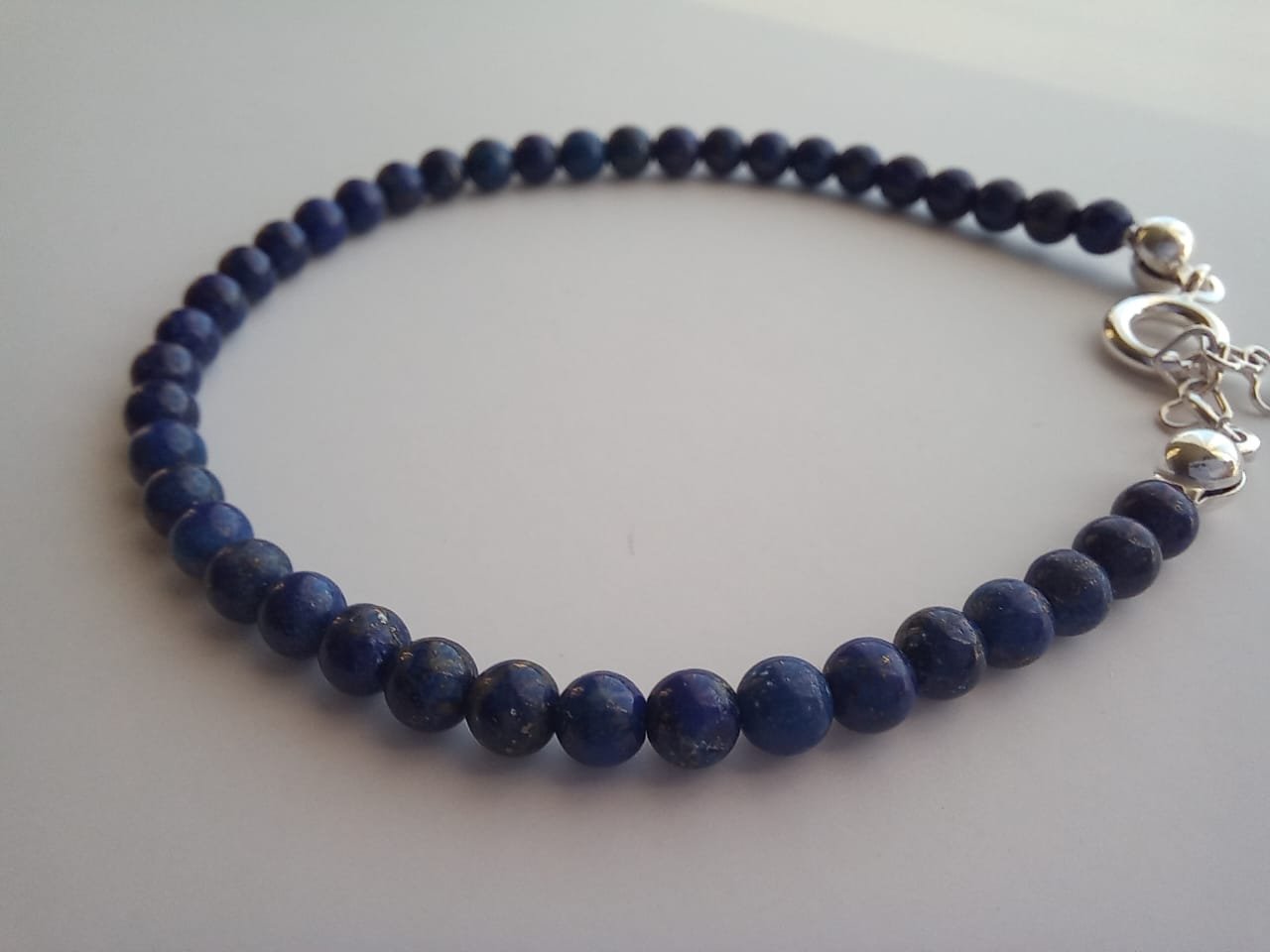 Pulsera fabricada a mano con piedras de lapislázuli de 3mm aproximadamente y con Broche de plata 925.